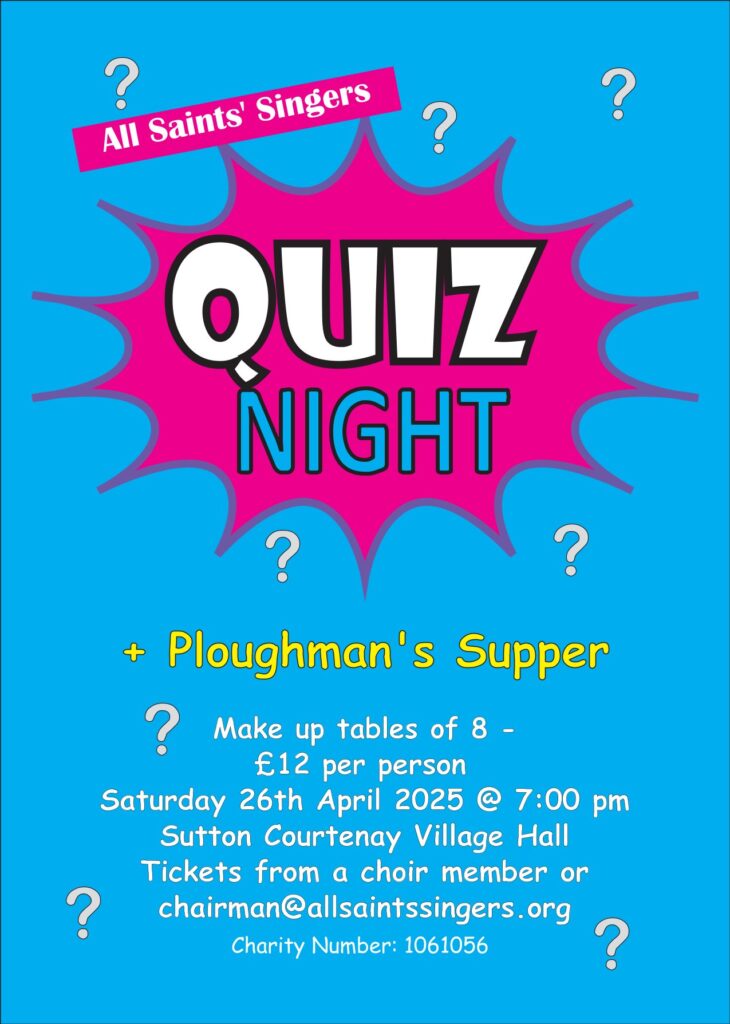 Tickets from choir members, Hari & Esha’s in Sutton Courtenay, and